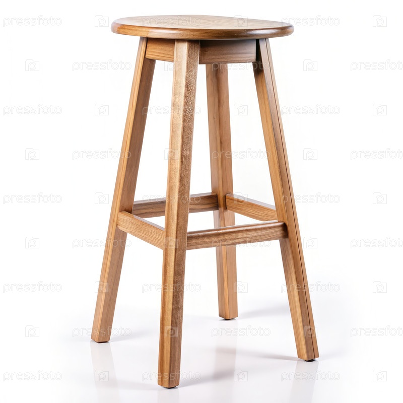 Деревянный барной стул в яркой обстановке с естественной отделкой на чистом белом фоне, подходящий для современного интерьера или наружного пространства