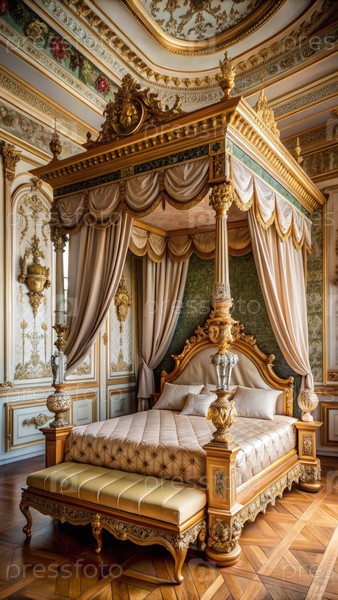 Роскошная кровать в дворцовом стиле в богато украшенной комнате со сложным декором