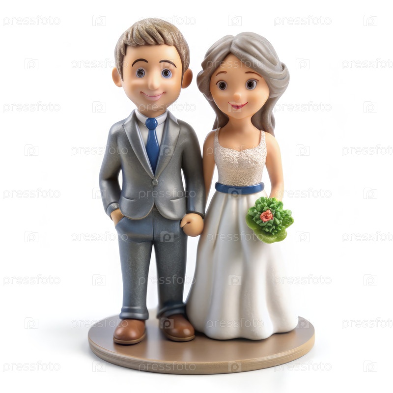 Парные статуэтки, стоящие вместе в формальном костюме, демонстрирующие любовь и празднование на белом фоне