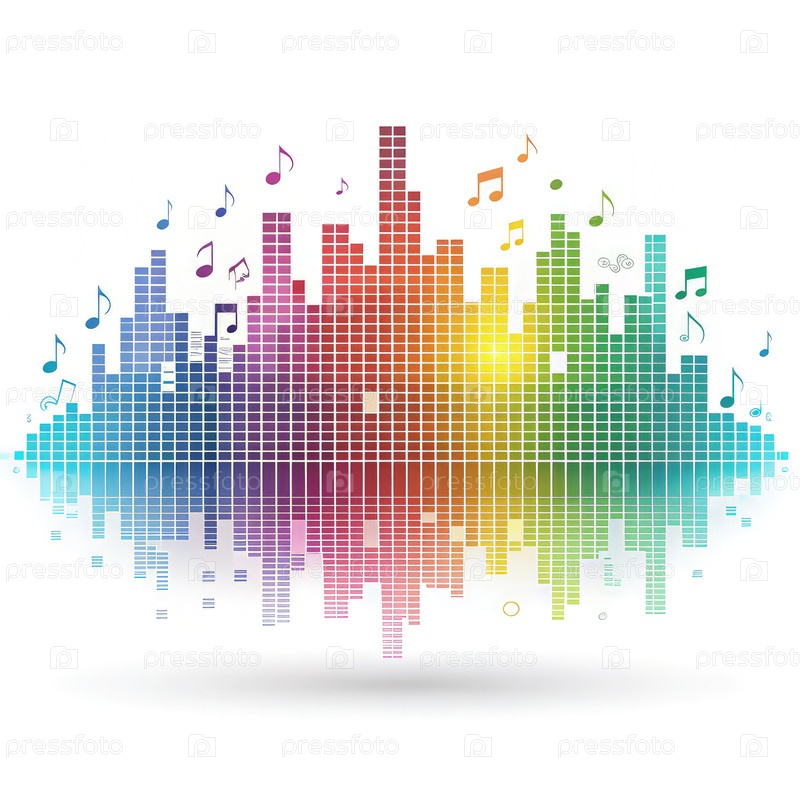 Красочная графика звуковых волн, представляющая современную музыку на белом фоне