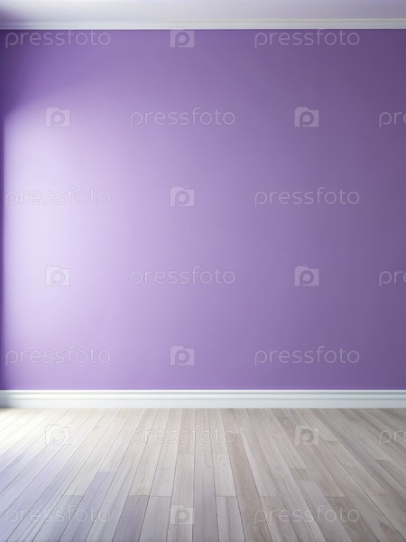 Гладкая фиолетовая стена контрастирует с легким деревянным полом в светлой комнате