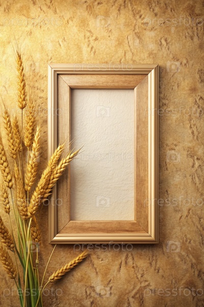 Элегантная фоторамка на текстурированной стене с пшеничными акцентами при естественном освещении