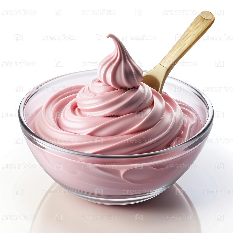 Густой крем мягкого розового цвета в стеклянной таре с золотой ложкой