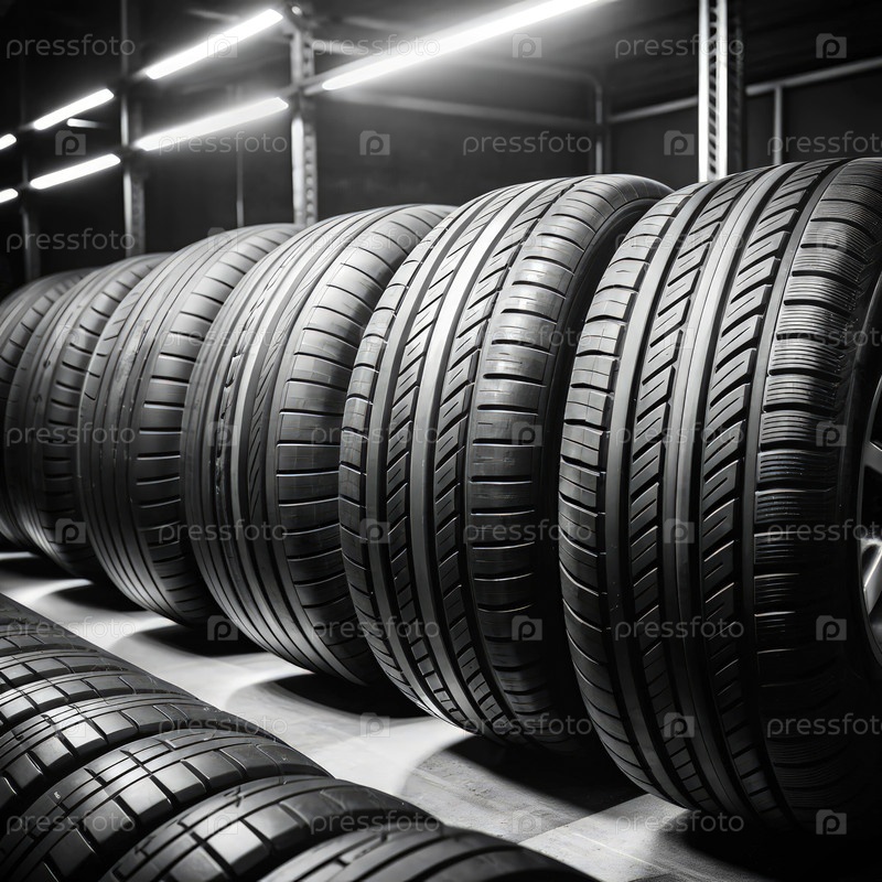 Высокоразрешенный дисплей шин Cinturato на полке хранения в шиновом магазине