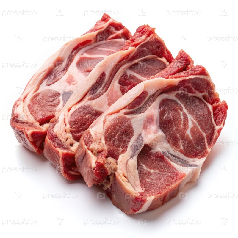 Свежие кусочки ягненка плечевой шеи на белом фоне