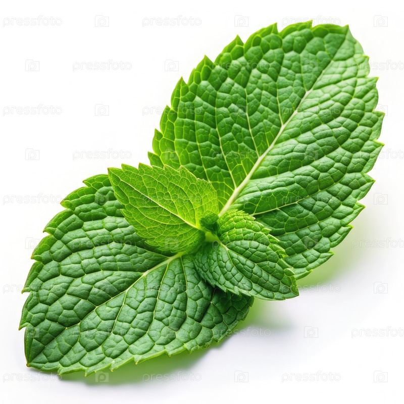 Свежие листья мяты расположены на белом фоне при естественном освещении