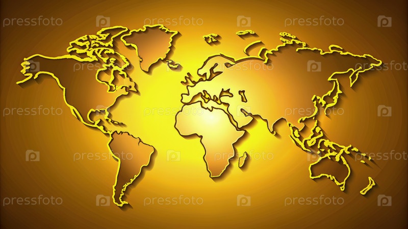 Подробная линия искусства Мировая карта на желтом фоне, показывающая глобальную топографию и географию