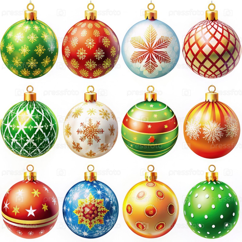 Яркий ассортимент красиво спроектированных рождественских орнаментов, отображаемых на элегантном фоне, идеально подходит для украшения праздников и празднования праздничного настроения