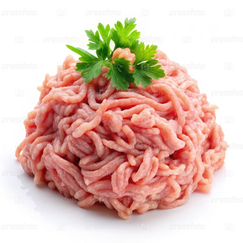 Свежемолотая индейка, аккуратно размещенная на чистом белом фоне для кулинарной презентации