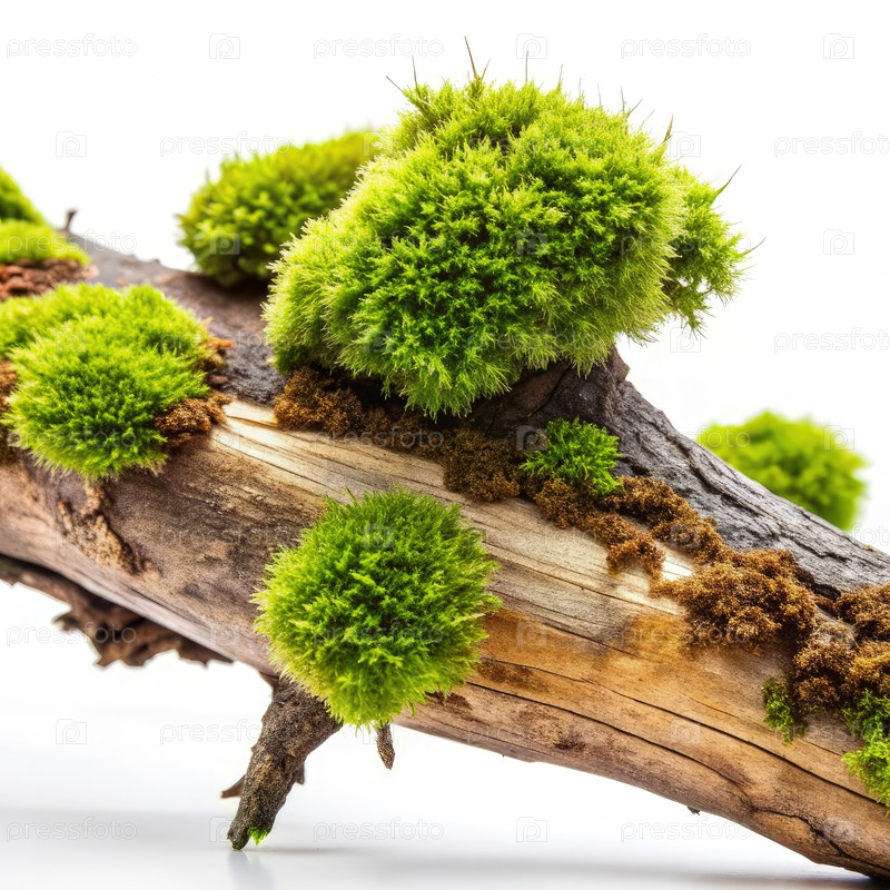 Свежий зеленый мох, процветающий на гниющей ветке в естественной среде