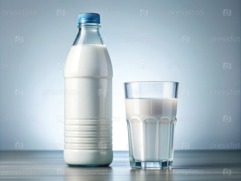 Бутылочная вода и молоко в прозрачном стекле на светлом фоне