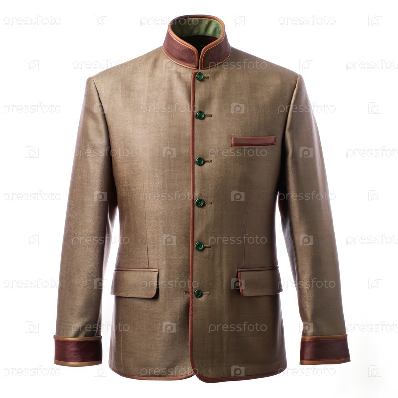 Традиционная куртка со стойким воротником, отображаемая в стандартном масштабе, демонстрирующая сложный дизайн и мастерство в современном свете