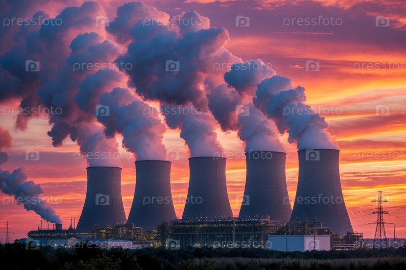 Генеративное загрязнение воздуха в большом промышленном городе, растение токсичный дым через высокие дымоходы