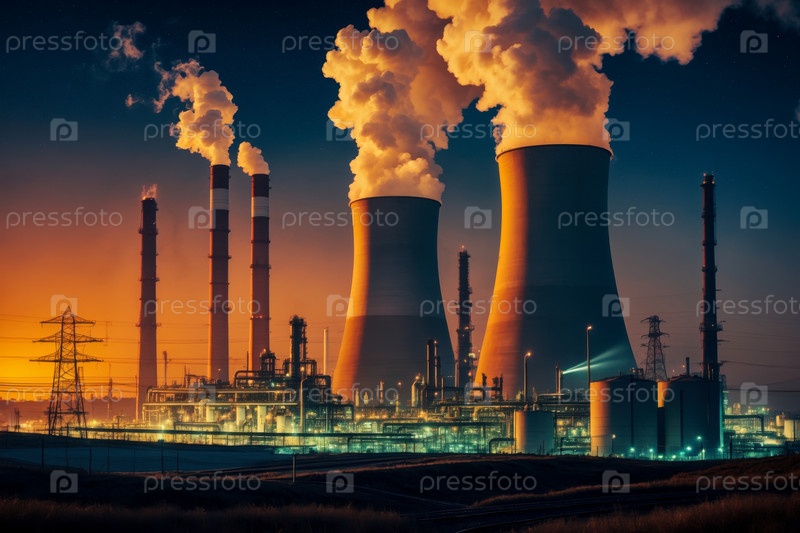 Генеративное загрязнение воздуха в большом промышленном городе, растение токсичный дым через высокие дымоходы