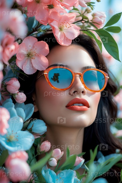 ИИ генеративный портрет молодой женщины естественно чистый помада макияж, модель моды красота в очках