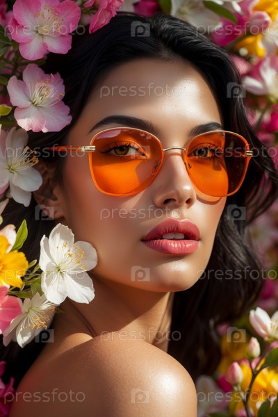 ИИ генеративный портрет молодой женщины естественно чистый помада макияж, модель моды красота в очках