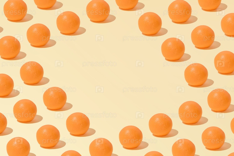 Творческий абстрактный летний оранжевый рисунок плоской прокладки на пастельно-желтом фоне минимализм с копировальным пространством