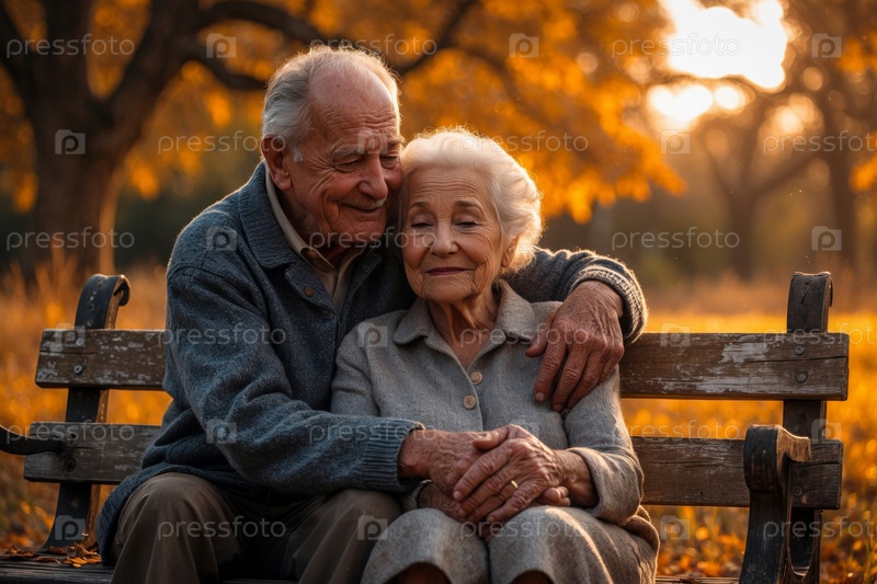 Женатая пара пожилая женщина и мужчина гуляют в осеннем парке, семья на заднем плане падающие листья AI Generative