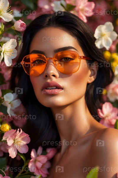 ИИ генеративный портрет молодой женщины естественно чистый помада макияж, модель моды красота в очках