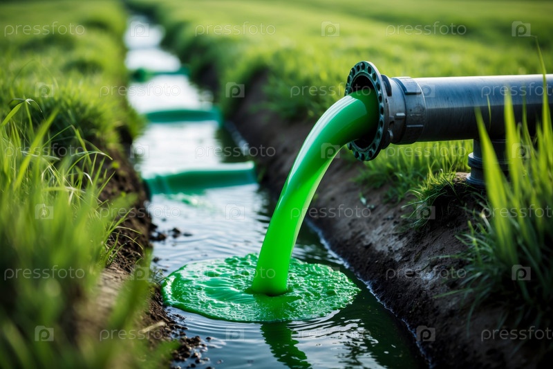 ИИ генеративная сточная вода течет из трубы в водоем, загрязняя экосистему морских морей океанов и рек