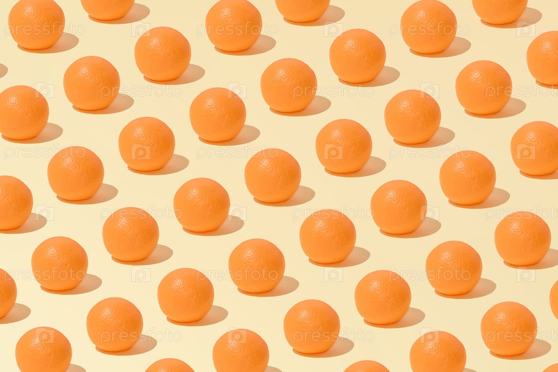 Творческий абстрактный летний оранжевый рисунок плоский лежит на пастельно-желтом фоне минимализма