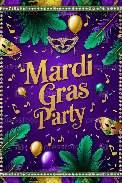 Поздравительная открытка приглашение традиционный праздничный парад с музыкой и костюмом Марди-Грас AI Generative