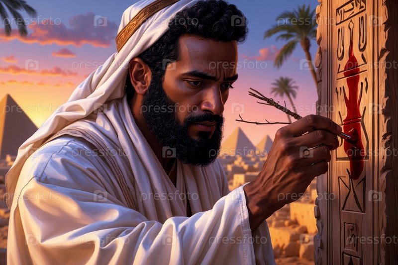 Генеративный еврей красит дверь своего дома кровью жертвенного ягненка, событие еврейского исхода из Египта