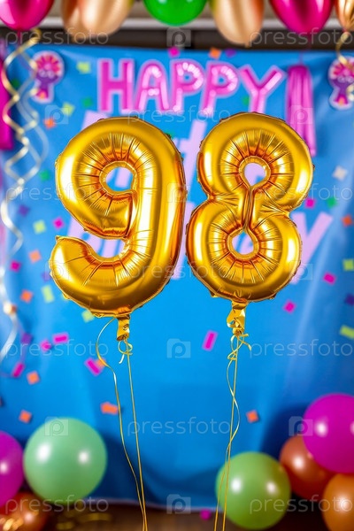 Гелий день рождения воздушный шар формы номер девяносто восемь, золотые буквы фигура 98 праздник праздничный фон декор