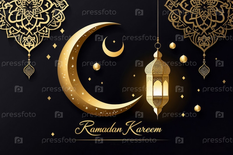 Поздравительная карточка с традиционным мусульманским исламским праздником Рамадан с вероучениями символ веры ИИ генеративный