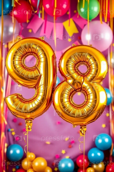 Гелий день рождения воздушный шар формы номер девяносто восемь, золотые буквы фигура 98 праздник праздничный фон декор