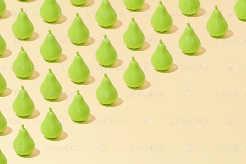 Творческий абстрактный летний грушевой рисунок плоский уклад на пастельно-желтом фоне минимализм с копировальным пространством