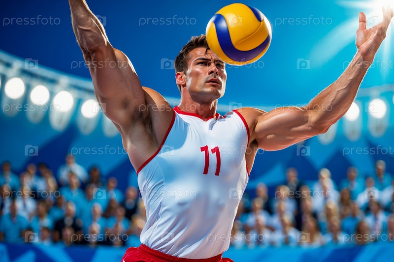 ИИ генеративный мужчина спортсмен играющий командные виды спорта волейбол корт летние игры соревнования