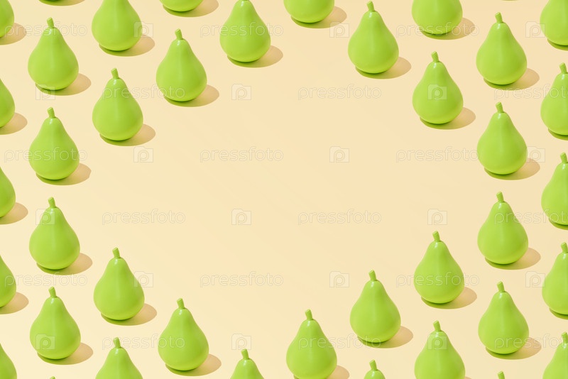 Творческий абстрактный летний грушевой рисунок плоский уклад на пастельно-желтом фоне минимализм с копировальным пространством
