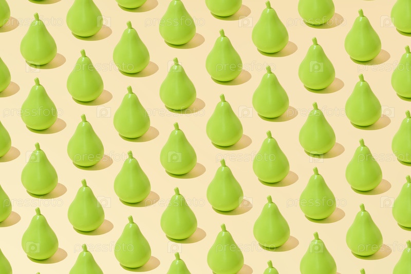 Творческий абстрактный летний грушевой рисунок плоский лежит на пастельно-желтом фоне минимализма