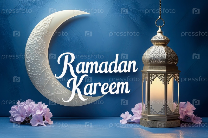Поздравительная карточка с традиционным мусульманским исламским праздником Рамадан с вероучениями символ веры ИИ генеративный