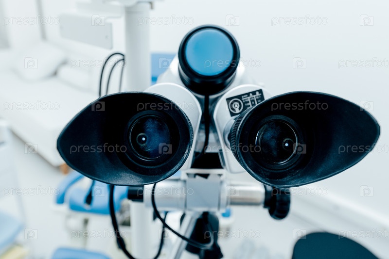 Колпоскопическая машина в ярком офисе гинеколога фоном гинекологического стула