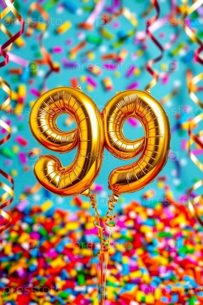 Гелий день рождения воздушный шар формы номер девяносто девять, золотые буквы фигура 99 праздник праздничный фон декор