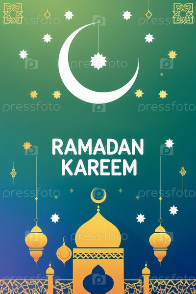 Поздравительная карточка с традиционным мусульманским исламским праздником Рамадан с вероучениями символ веры ИИ генеративный