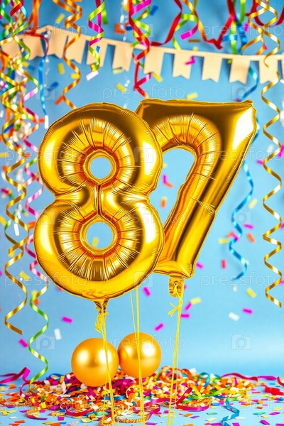 Гелийный баллон на день рождения номер восемьдесят семь, фигура из золотых букв 87 праздник праздничный фон