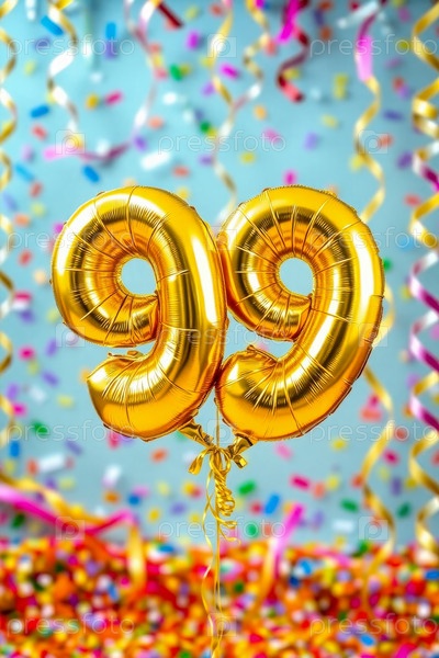 Гелий день рождения воздушный шар формы номер девяносто девять, золотые буквы фигура 99 праздник праздничный фон декор