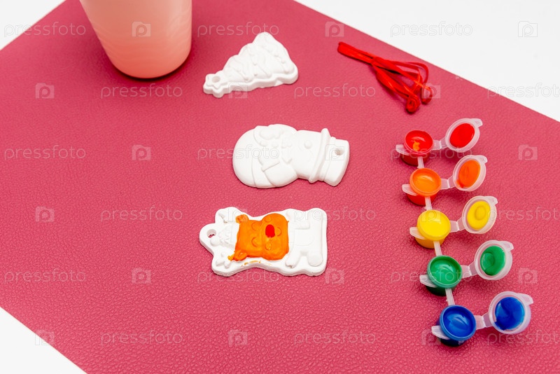 Гипсовые фигуры оленя, снеговика и рождественской елки DIY на столе, ручной декор для нового года