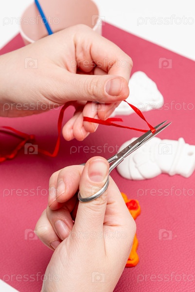 Женщина рисует гипсовые фигуры снеговика, оленя и рождественской елки с цветными красками гуаши, новогодние ручные игрушки декор