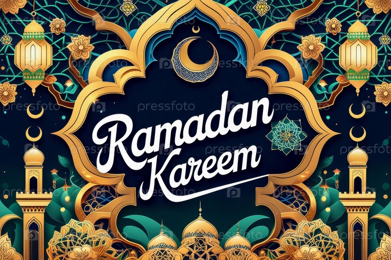 Поздравительная карточка с традиционным мусульманским исламским праздником Рамадан с вероучениями символ веры ИИ генеративный