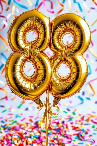 Гелиевый баллон на день рождения номер восемьдесят восьмой, фигура золотой буквы 88 праздник праздничный фон