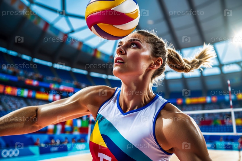 ИИ генеративная женщина-спортсменка играет в командные виды спорта волейбольный корт летние игры соревнования