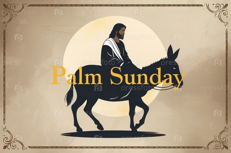 AI Generative Поздравления с традиционным христианским праздником Пальмового воскресенья, триумфальным входом Иисуса Христа в Иерусалим