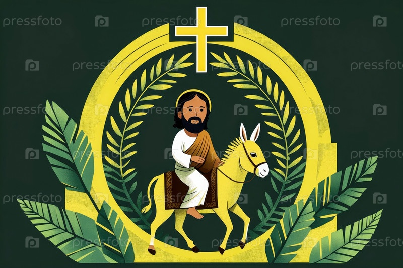 Традиционное христианское Пальмовое воскресенье, триумфальное вступление Иисуса Христа в Иерусалим AI Generative