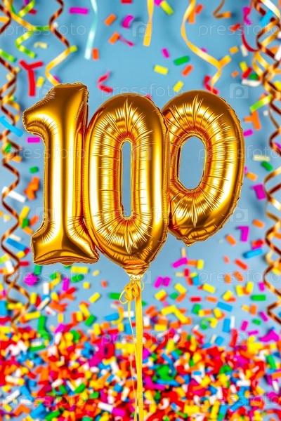 Гелийный день рождения шарик формы номер сто, золотые буквы фигура 100 праздник праздничный фон декор