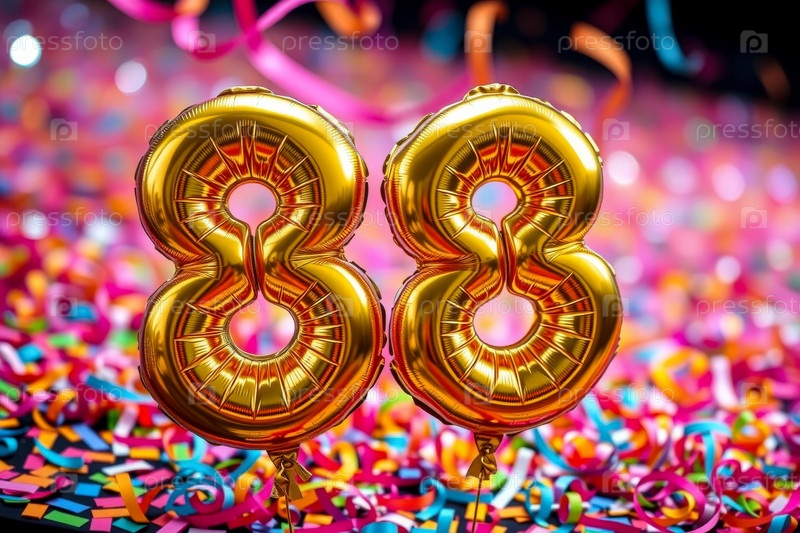 Гелиевый баллон на день рождения номер восемьдесят восьмой, фигура золотой буквы 88 праздник праздничный фон