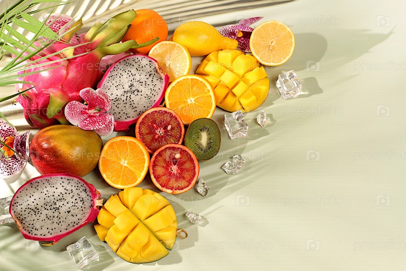 Летние экзотические тропические фрукты, баннер для кафе или магазина, открытка для рекламы азиатского рынка